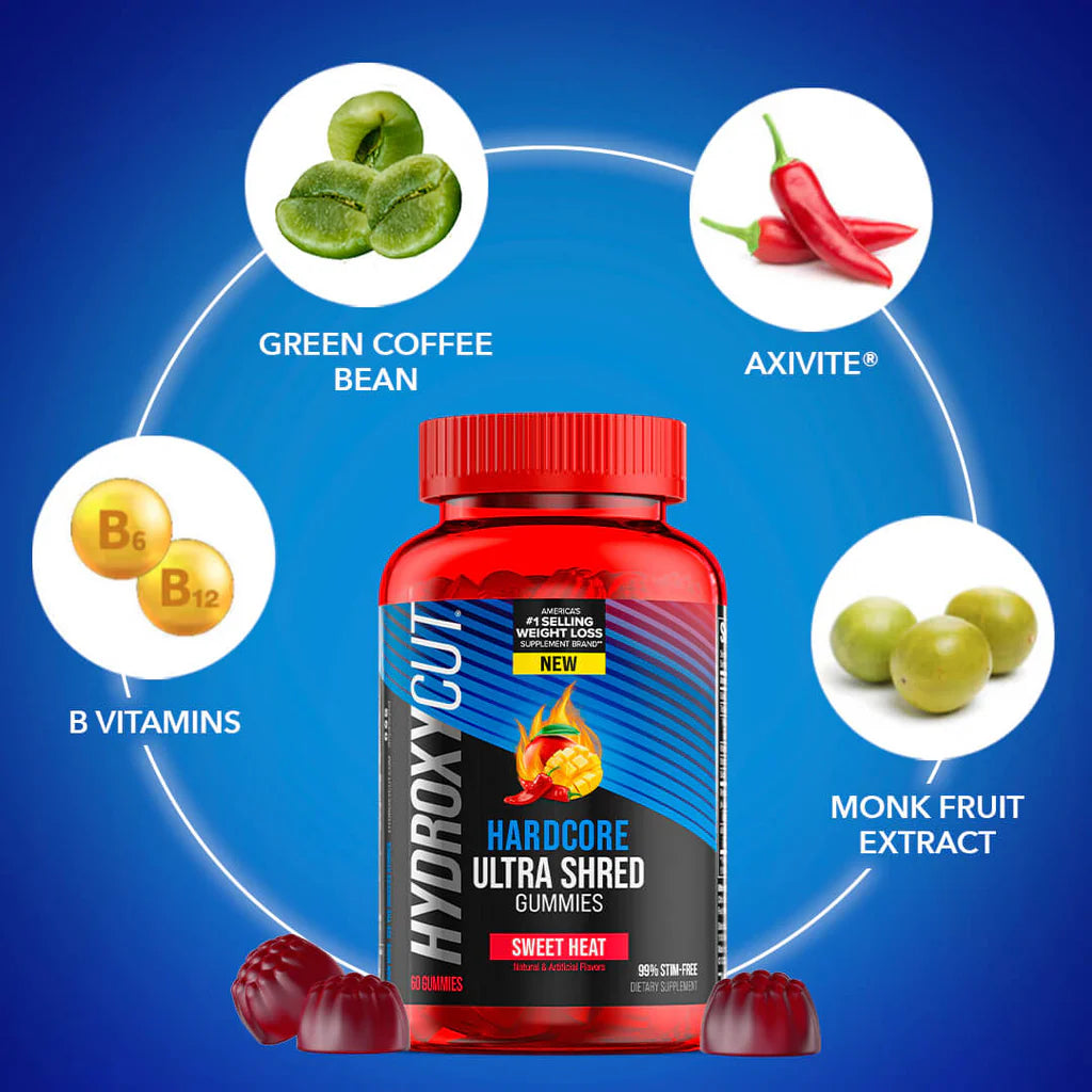 Hydroxycut Hardcore Ultra Shred Gummies are the new way to reach your body goals with a potent sweet heat flavor – mango brings the sweet, chilli brings the heat!