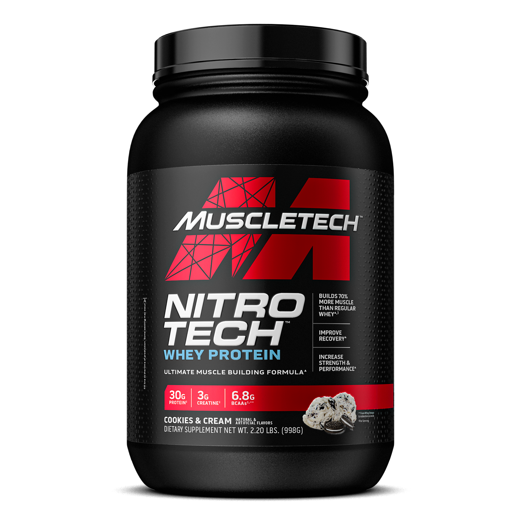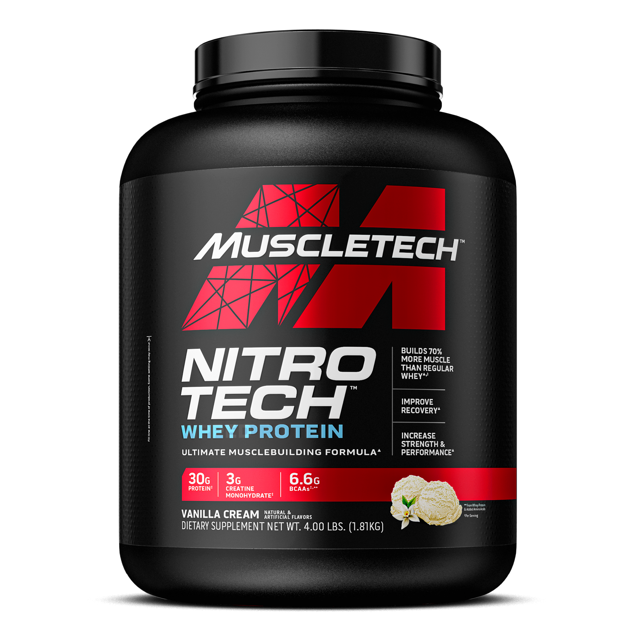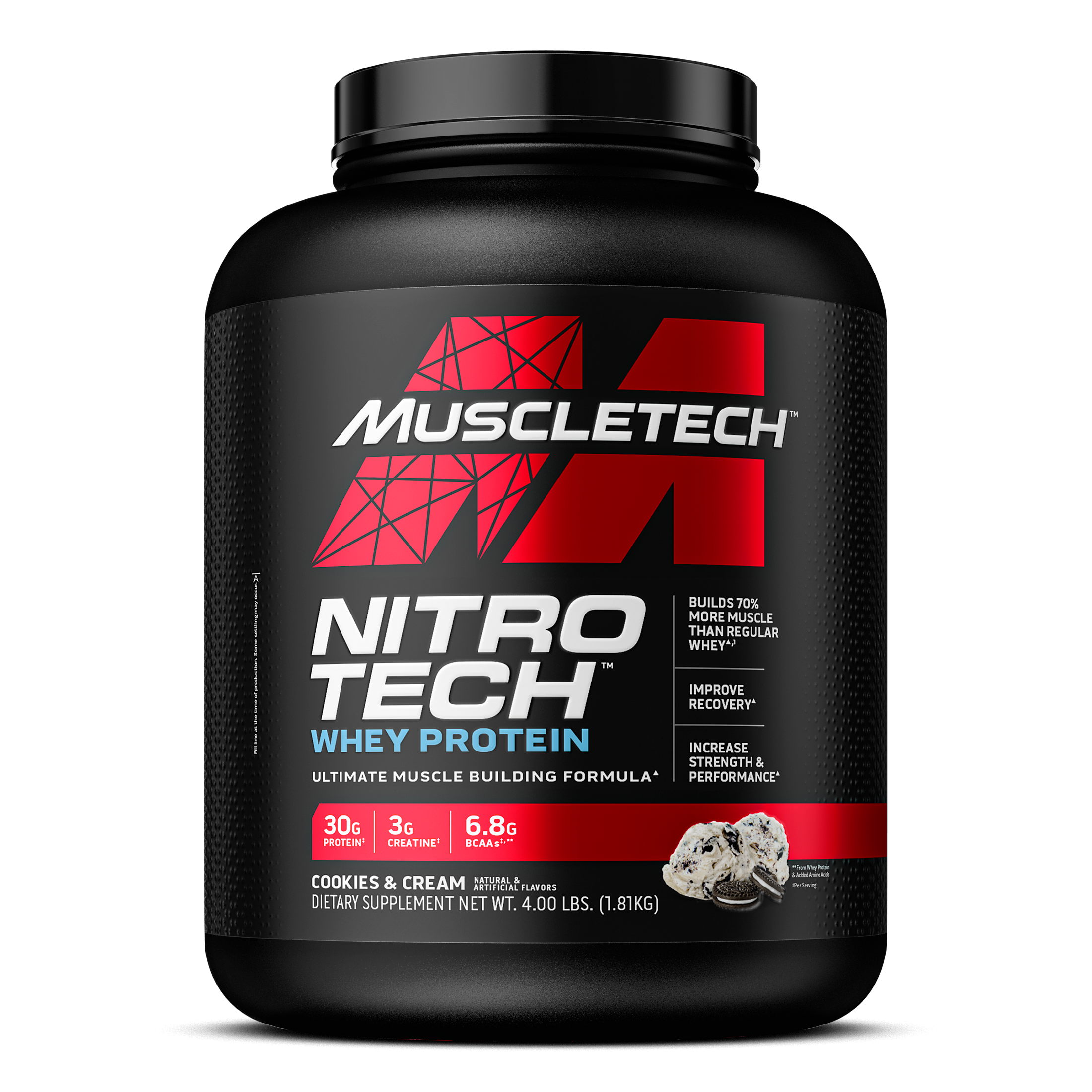 NITRO-TECH contains protein sourced primarily from whey protein isolate - one of the cleanest and purest protein sources available to athletes. It is also enhanced with the most studied form of creatine for faster gains in muscle and strength.