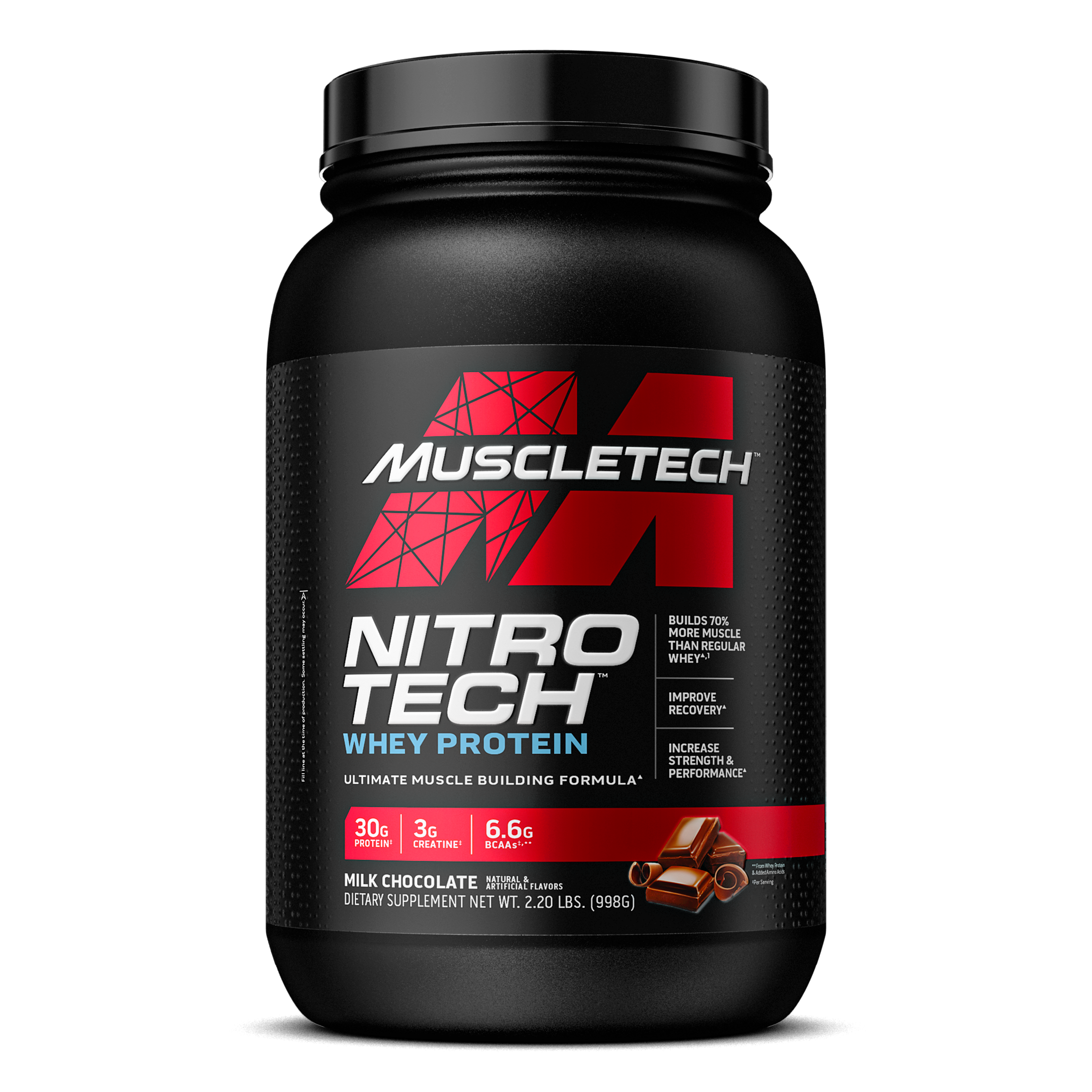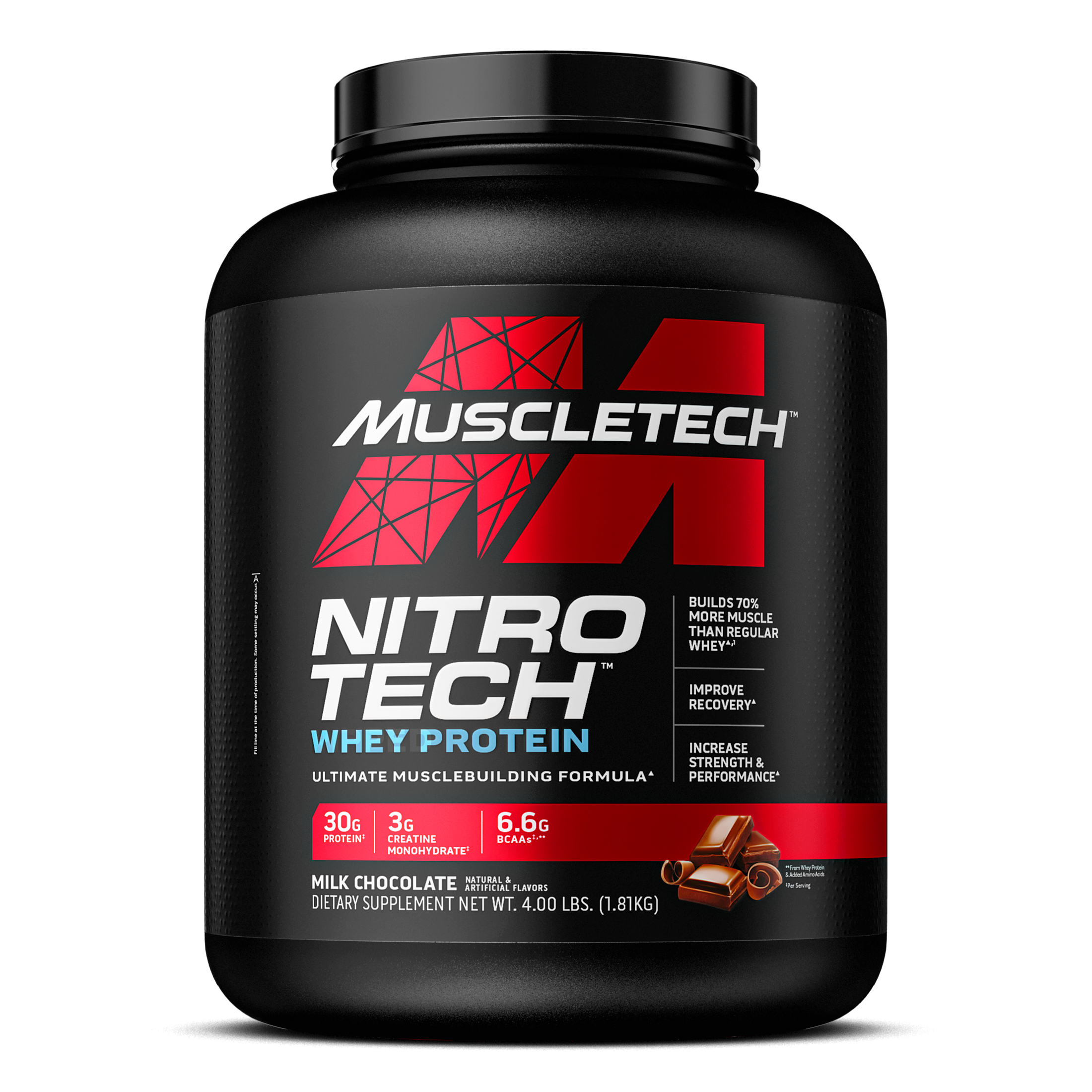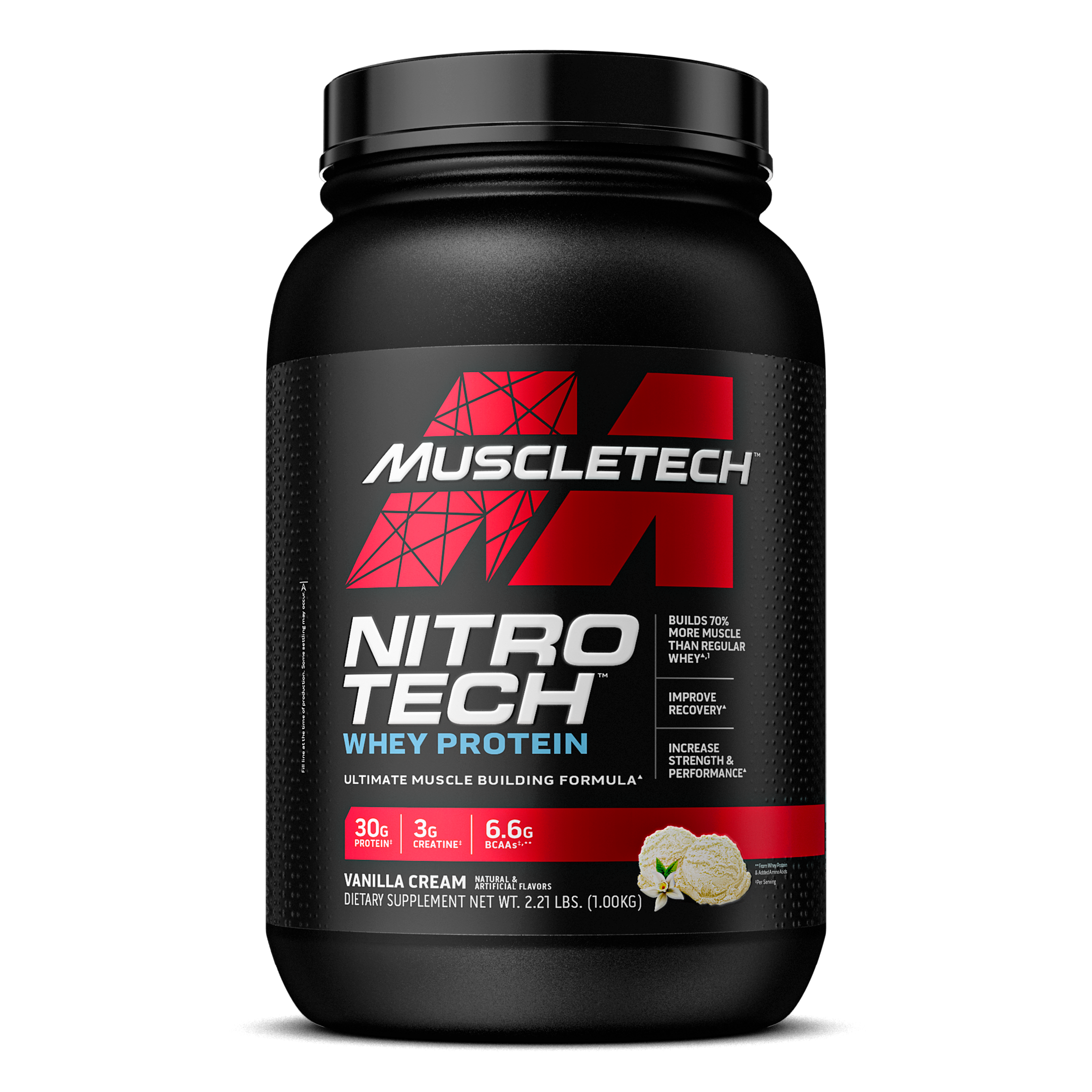 NITRO-TECH contains protein sourced primarily from whey protein isolate - one of the cleanest and purest protein sources available to athletes. It is also enhanced with the most studied form of creatine for faster gains in muscle and strength.