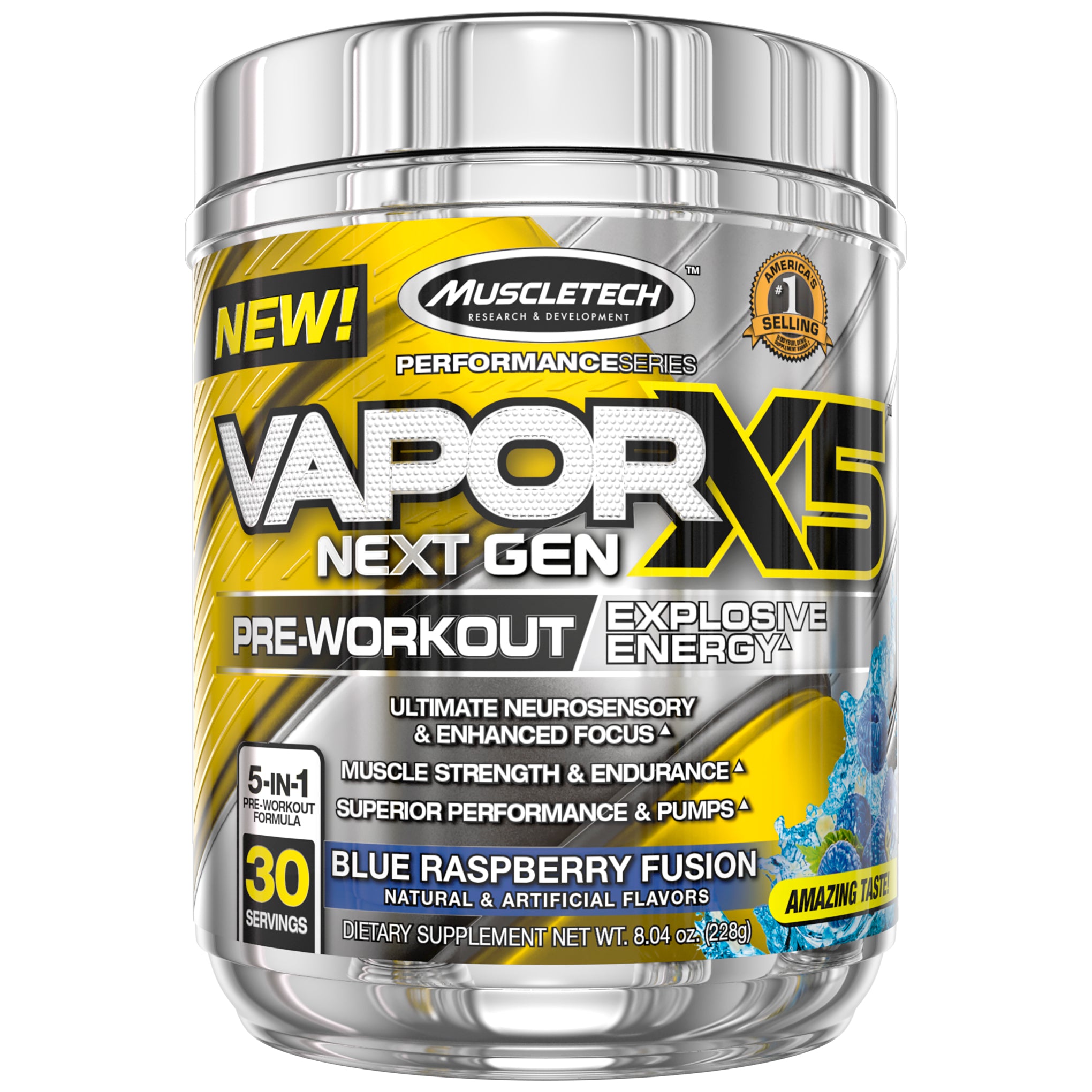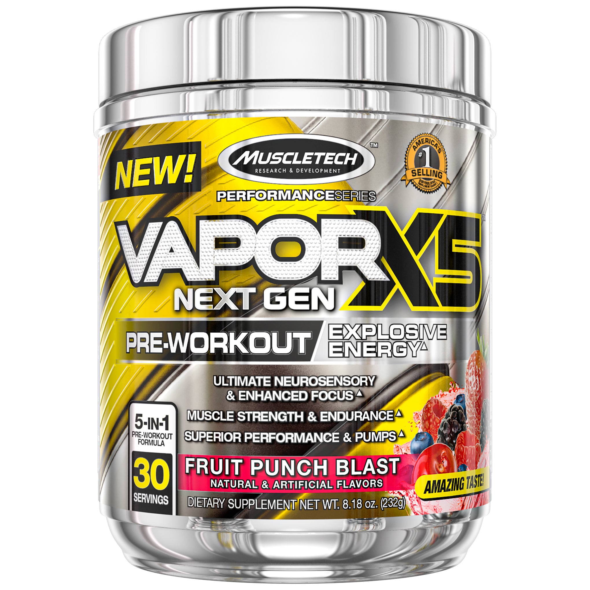 Muscletech researchers have reinvented the pre-workout category again! Vaporx5 next gen is the most complete pre-workout product available. It delivers unparalleled energy, extreme muscle pumps and performance, a surreal sensory experience plus scientifically validated musclebuilding power! This intense formula has everything you could possibly want in a pre-workout and nothing you don’t - Zero underdosed key ingredients or fillers.