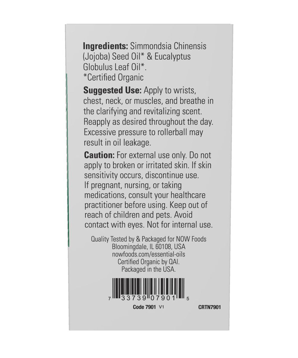 1x NOW ESSENTIAL OILS EUCALYPTUS ESSENTIAL OIL BLEND, ORGANIC ROLL-ON - 10 ml