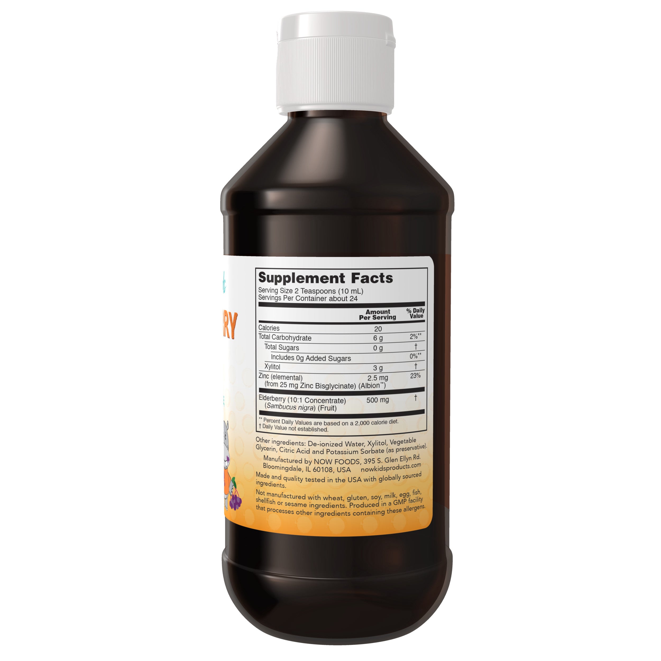 NOW® Kids Elderberry Liquid combines elderberry concentrate with zinc to promote seasonal wellness. Elderberry has been used traditionally to maintain health and well-being. Zinc has been added to promote normal immune system function. Astragalus is an herbal ingredient that has been included to support a healthy immune system response to seasonal challenges.