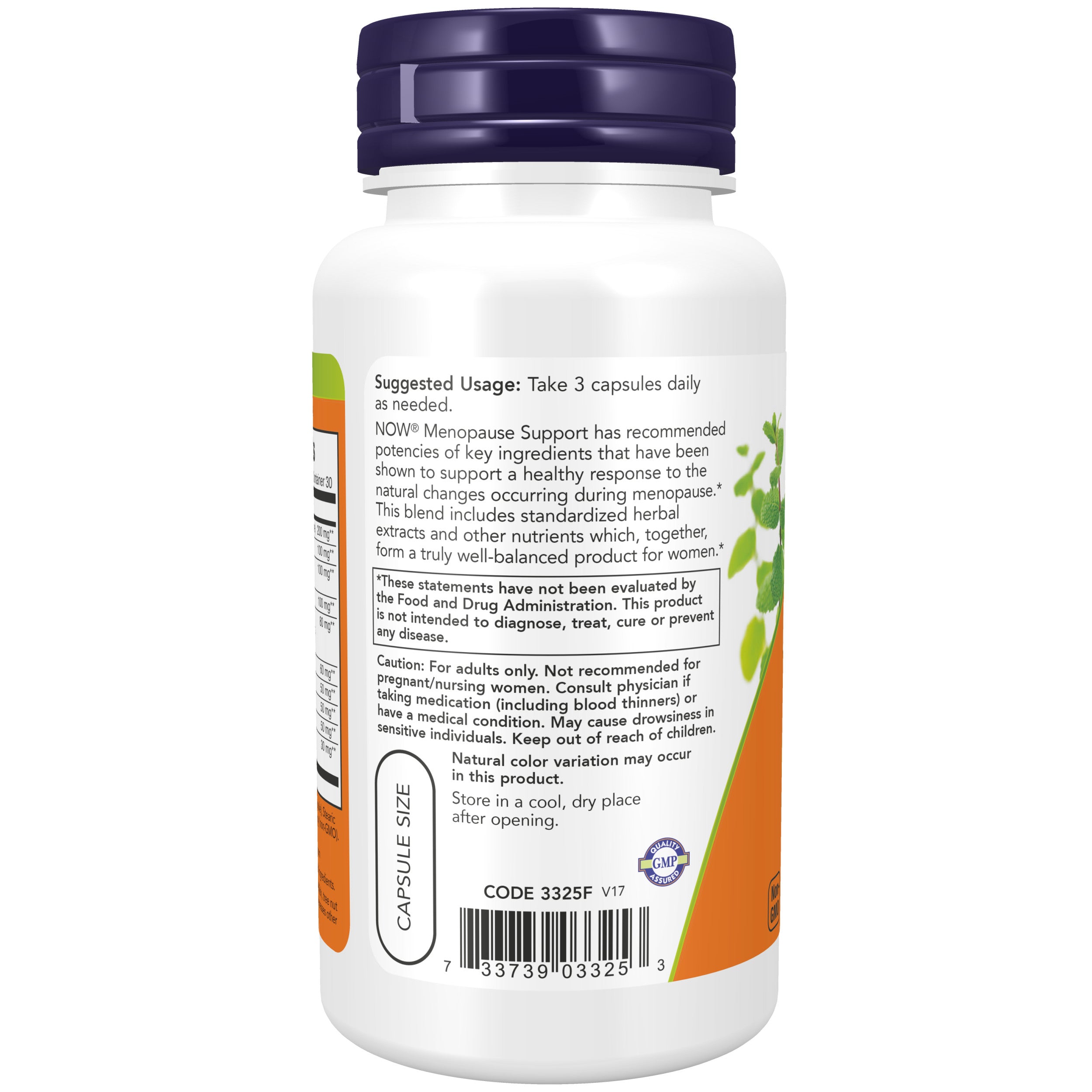 NOW® Menopause Support has recommended potencies of key ingredients that have been shown to support a healthy response to the natural changes occurring during menopause.* This blend includes standardized herbal extracts and other nutrients which, together, form a truly well-balanced product for women.* Natural colour variation may occur in this product.