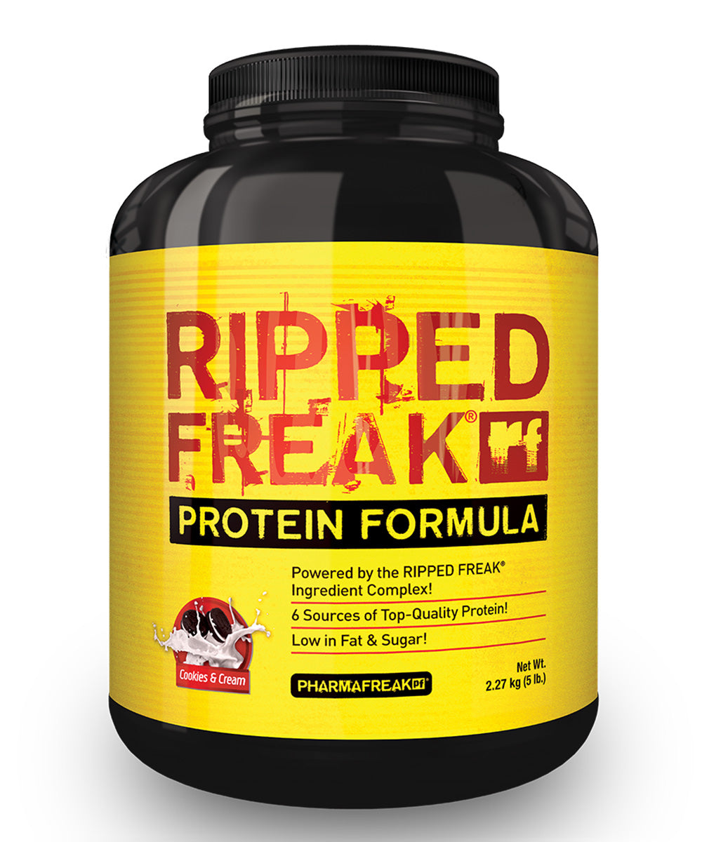RIPPED FREAK Protein is scientifically formulated to assist energy expenditure and help improve body composition. our formula delivers six different sources of protein, bcaas and glutamine to maximize muscle growth and fat loss all day long!