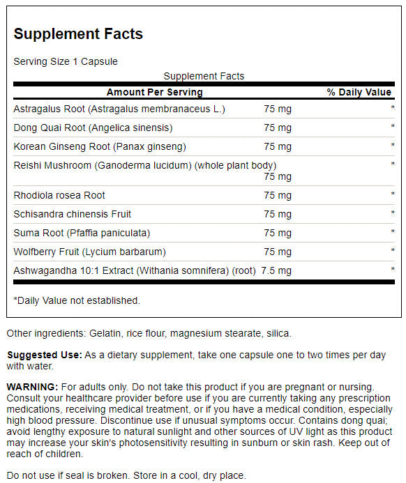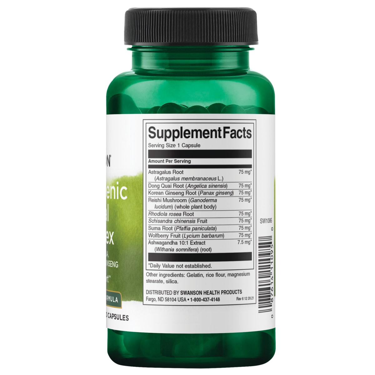 Overcome the effects of stress and bring your body back into balance with the powerful blend of adaptogenic herbs in Swanson Adaptogenic Herbal Complex with Rhodiola, Ashwagandha & Ginseng. This one-of-a-kind formula combines nine of nature's most effective, time-tested herbal adaptogens from around the globe to protect and balance various organ systems, normalizing body functions that are affected by stress to promote optimal vitality.