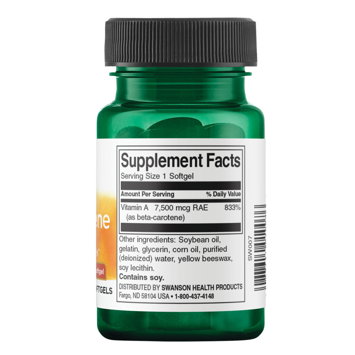 Get vitamin A for healthy vision and antioxidant protection for your whole body with Swanson Beta-Carotene! A plant pigment that can be converted into vitamin A by the body as needed, beta-carotene also acts as a powerful antioxidant in its own right.