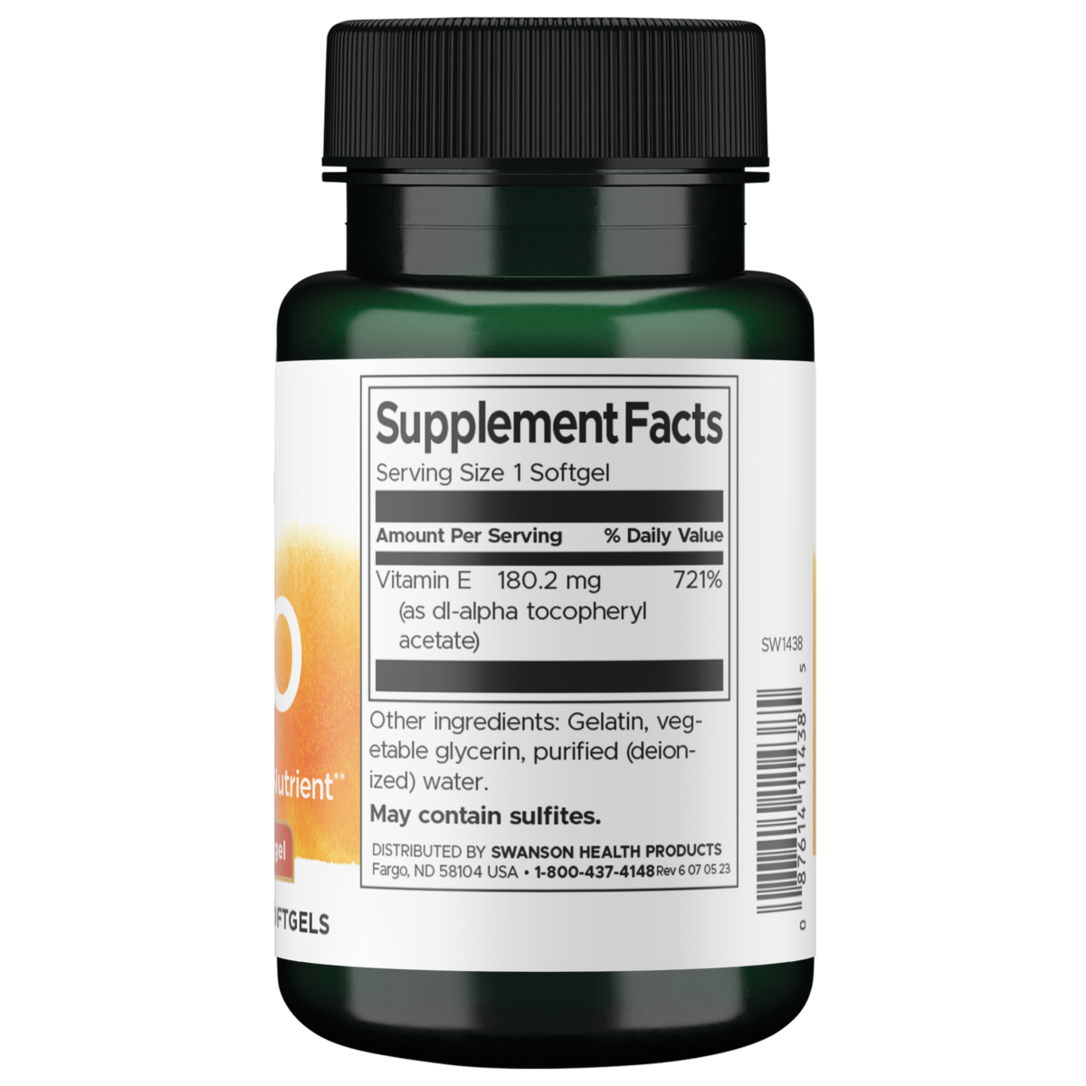 Swanson E-400 Vitamin E provides cardiovascular health protection, but it does so much more. Its antioxidant properties help protect vital tissues throughout the body against the ravages of free radicals. Our high-absorption softgels deliver 180 mg of vitamin E per serving.