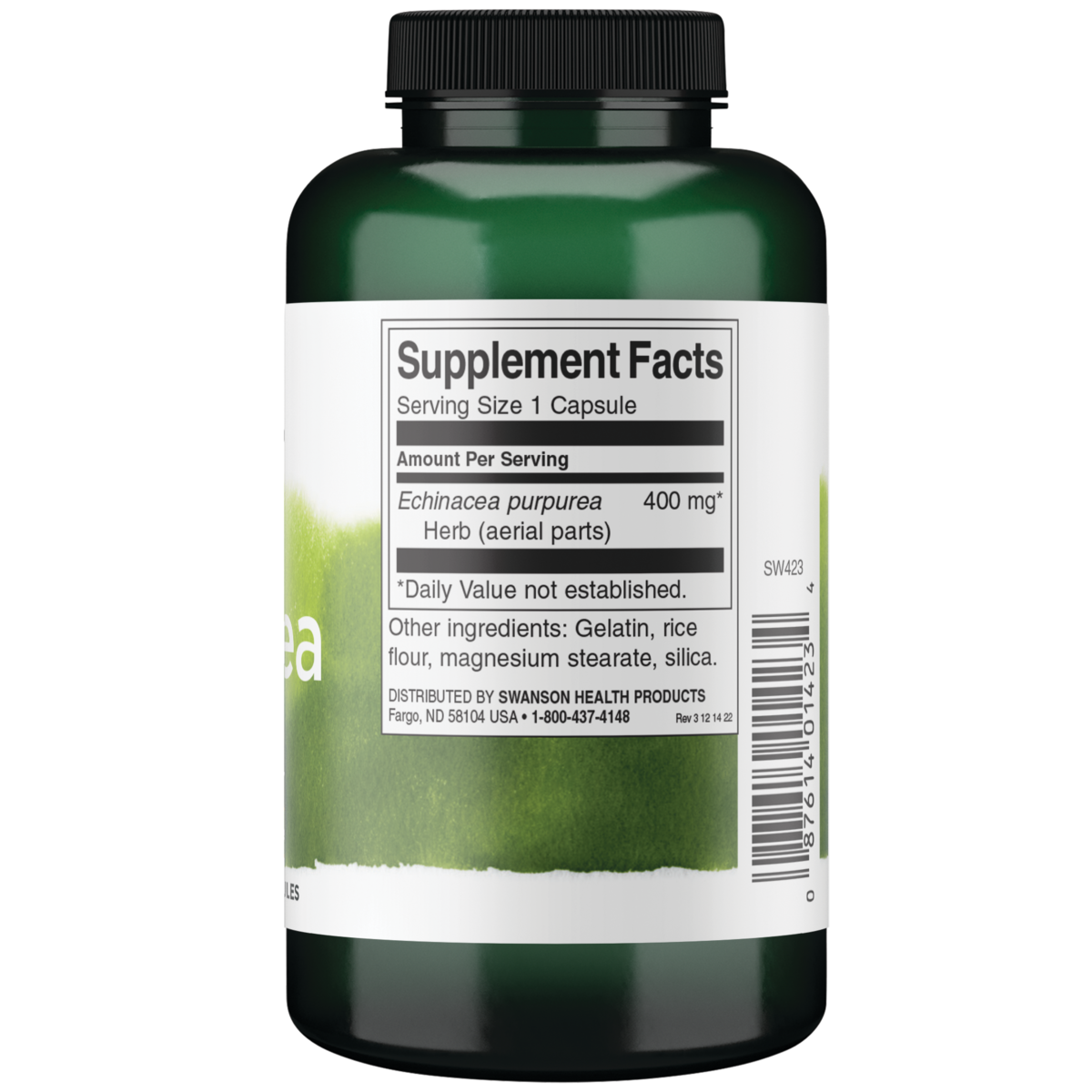 Support your body's defenses with time-honored Echinacea from Swanson! Also known as the purple coneflower, this powerful plant is packed with antioxidants! You may recognize its spiky head and purple petals in area gardens, but it's been used for hundreds of years as an immune-supporting herb, thanks to its polysaccharides, alkamides and flavonoids. Each capsule contains 400 mg of echinacea.